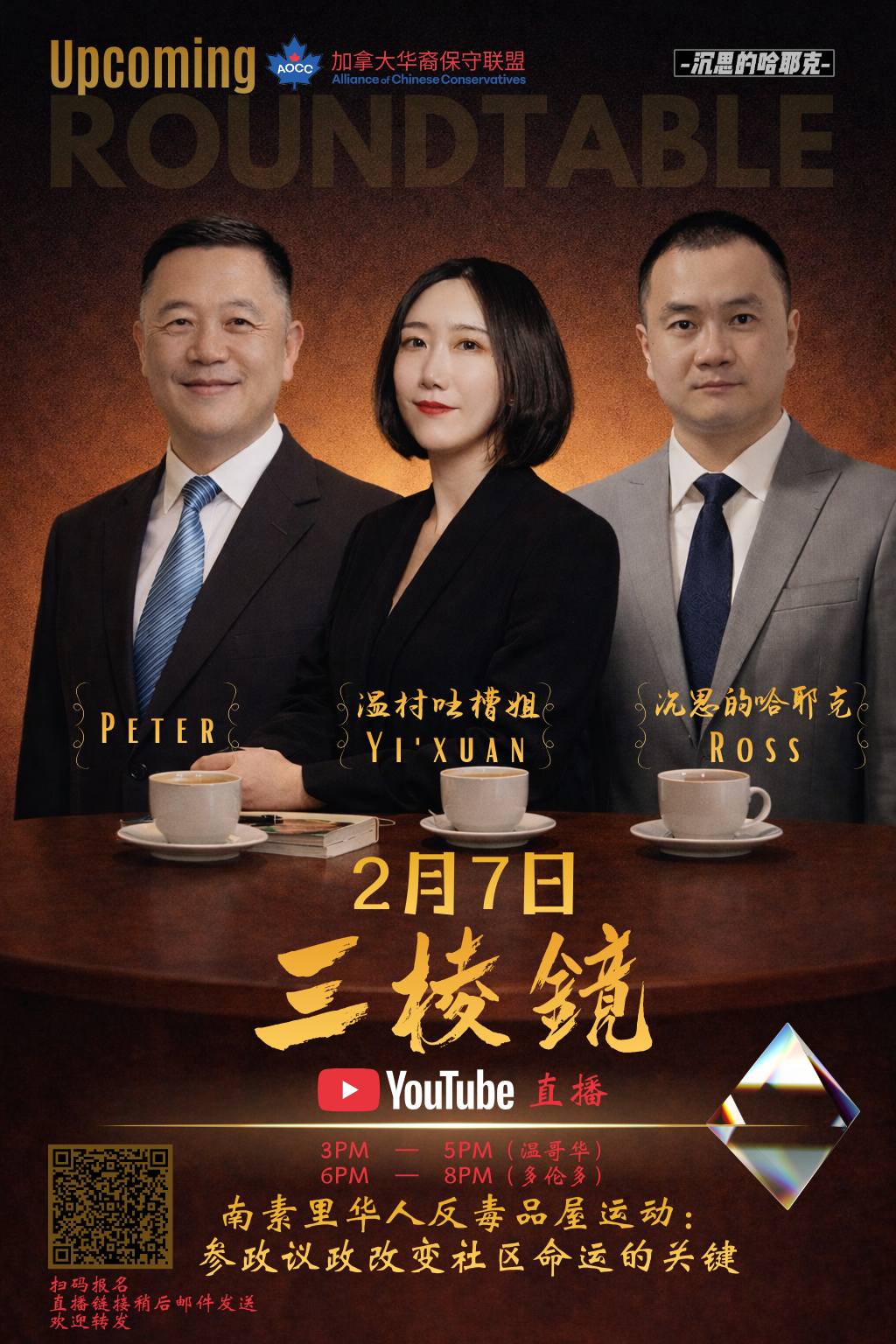 AOCC will host a Youtube live event on Saturday, Feb 7, 3:00–5:00 PM (Pacific Time)—our first Prism Roundtable — South Surrey Chinese Community Against supportive/complex-care housing: Why Political Participation and Policy Advocacy Can Change a Community’s Future