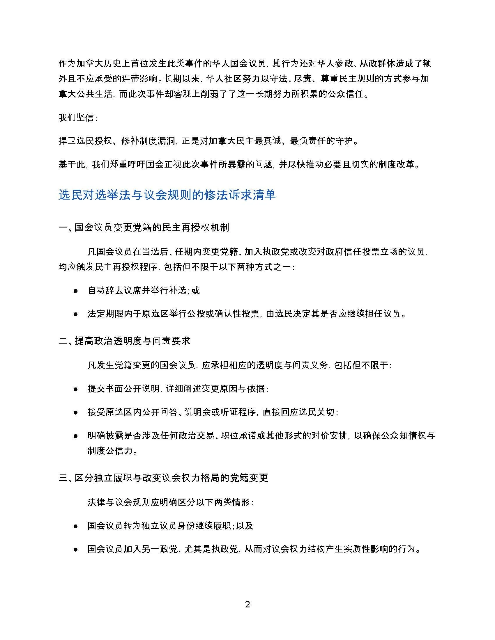 We are Canadian voters who care deeply about Canada’s democratic system and public integrity, including many members of the Chinese-Canadian community who have long been actively engaged in civic affairs. Recently, the incident in which MP Michael Ma abruptly changed party affiliation only eight months after being elected has triggered widespread public backlash, and has caused a substantive shock to voters’ trust in Canada’s democratic process. The facts make clear that this incident extends far beyond a single riding and lays bare long-standing structural deficiencies within Canada’s parliamentary system that are undermining citizens’ rights to political participation, expression, and representation on a nationwide scale.